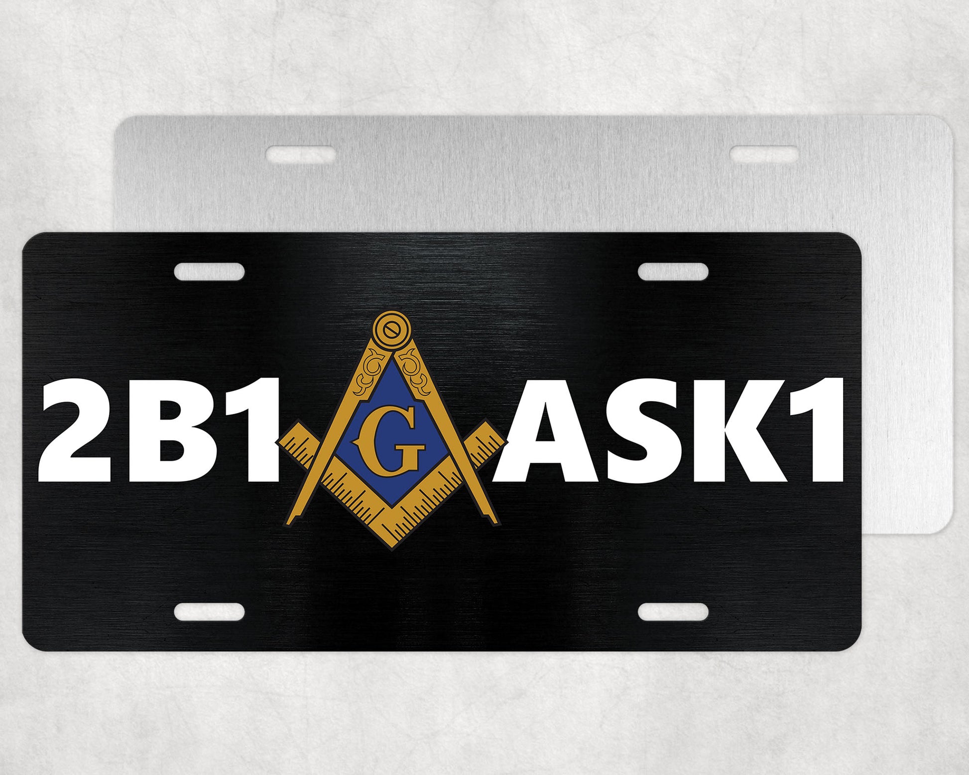 This is our 2B1 ASK1 Masonic license plate with an amazing high quality sublimated image! It's a permanent picture that won't peel, fade or crack.