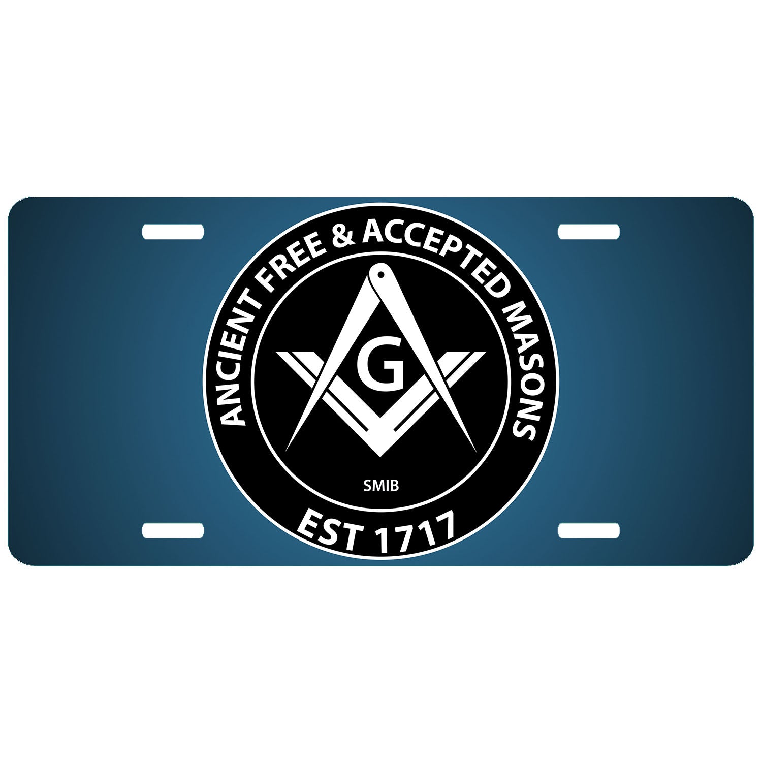 Ancient Free & Accepted Masons 1717 License Plate Tag Masonic Blue