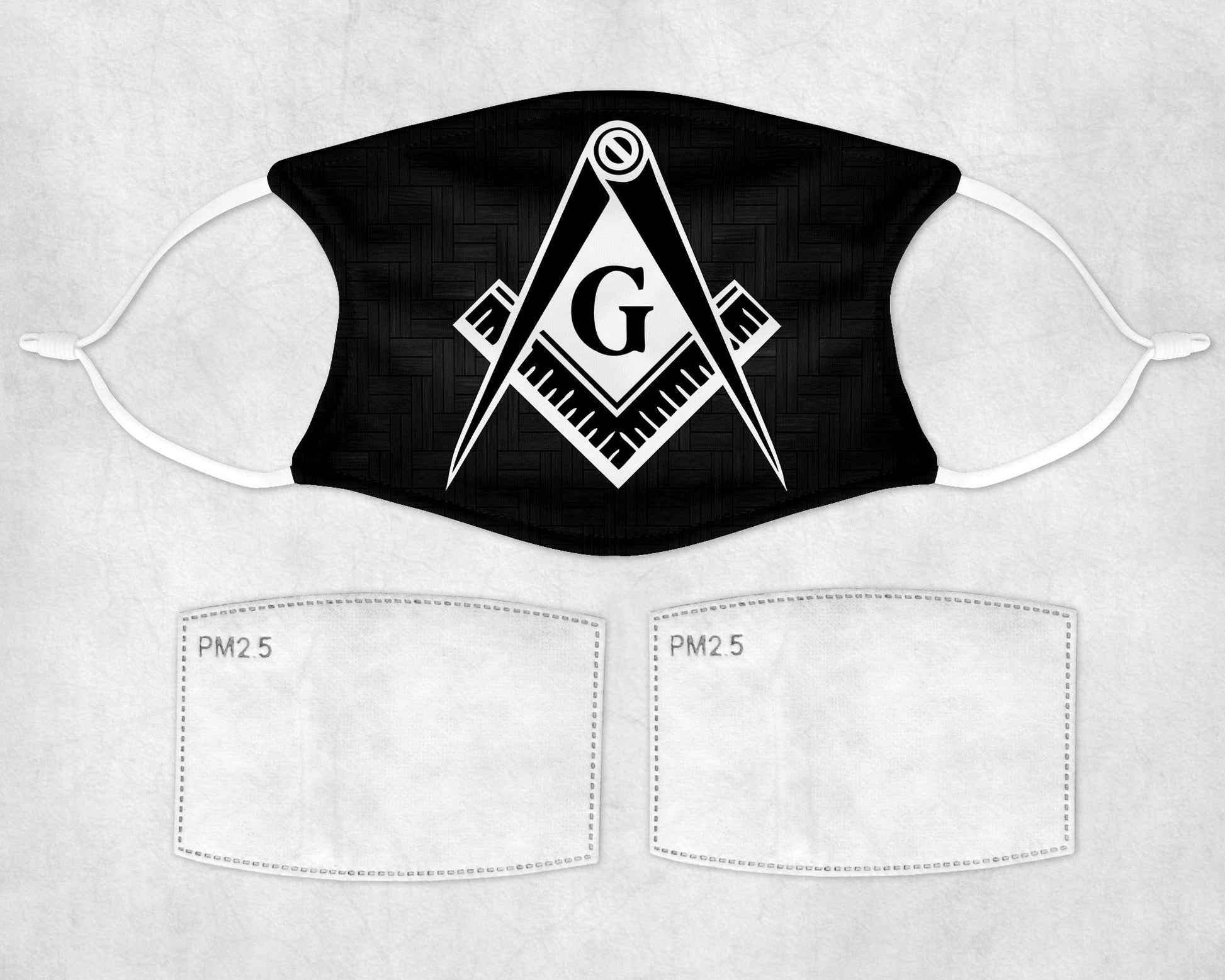 Black White Masonic Face Mask Adjustable Filters Mason Facemask