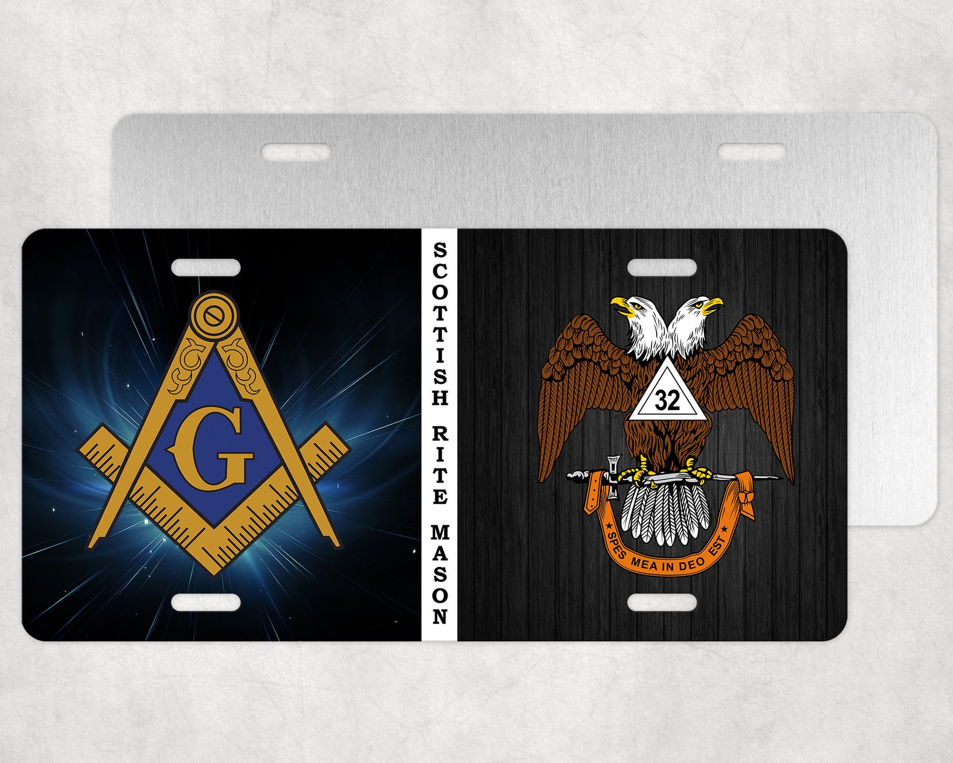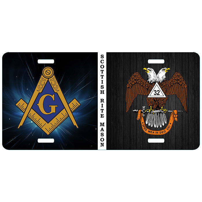 Mason Scottish Rite 32nd Degree Wings Down Split Masonic License Plate