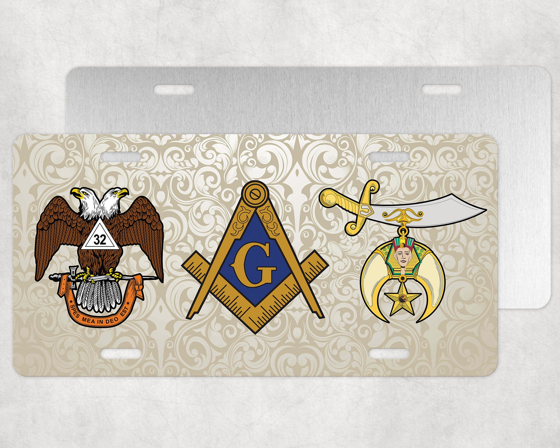 This is our Masonic 32nd Degree Shrine Wings Down Antique License Plate with an amazing high quality sublimated image! It's a permanent picture that won't peel, fade or crack.