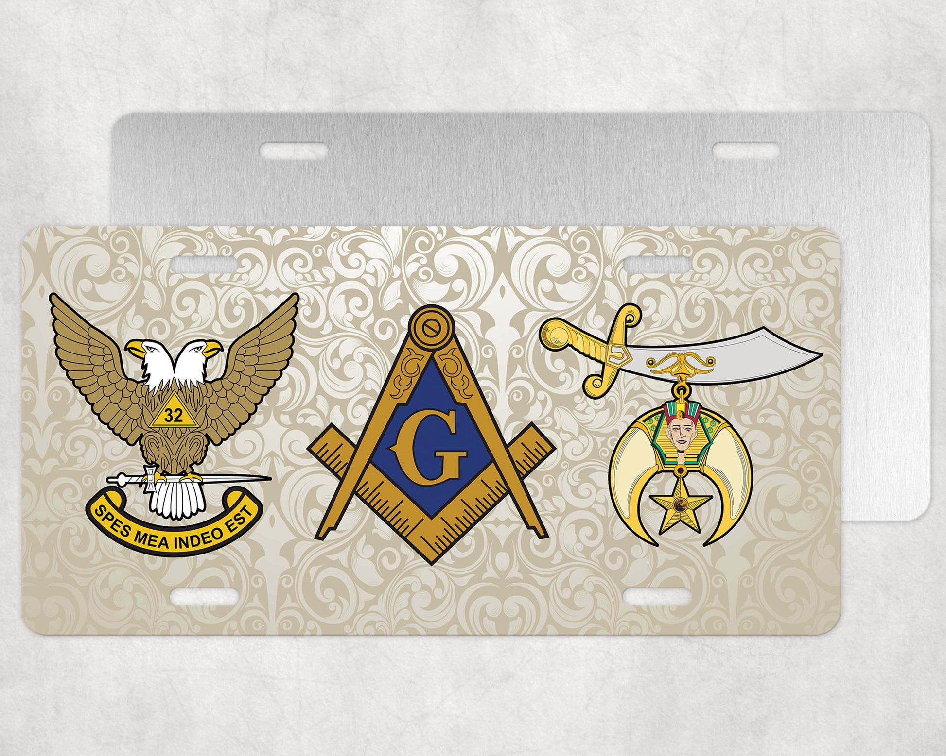 This is our Masonic 32nd Degree Shrine Wings Up Antique License Plate with an amazing high quality sublimated image! It's a permanent picture that won't peel, fade or crack.
