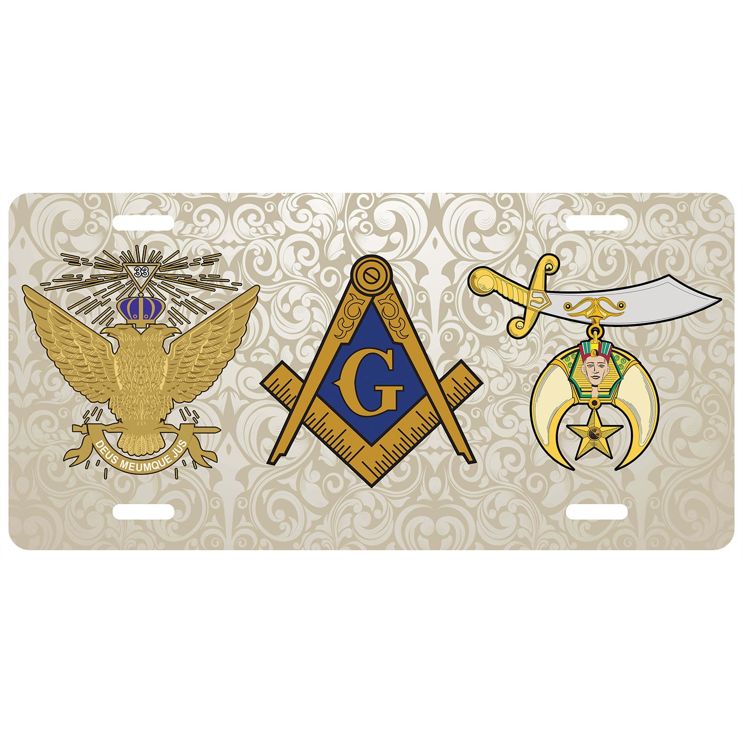 This is our Masonic 33rd Degree Shrine Wings Up Antique License Plate with an amazing high quality sublimated image! It's a permanent picture that won't peel, fade or crack.
