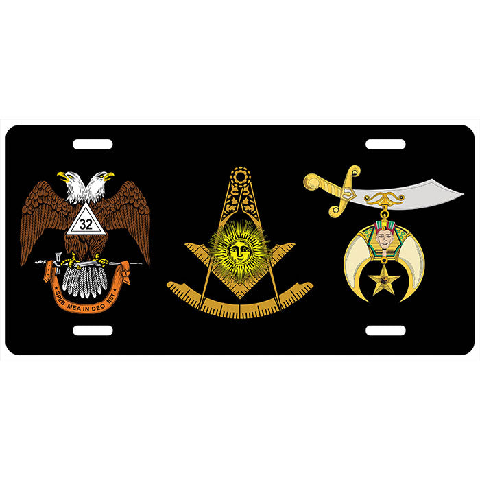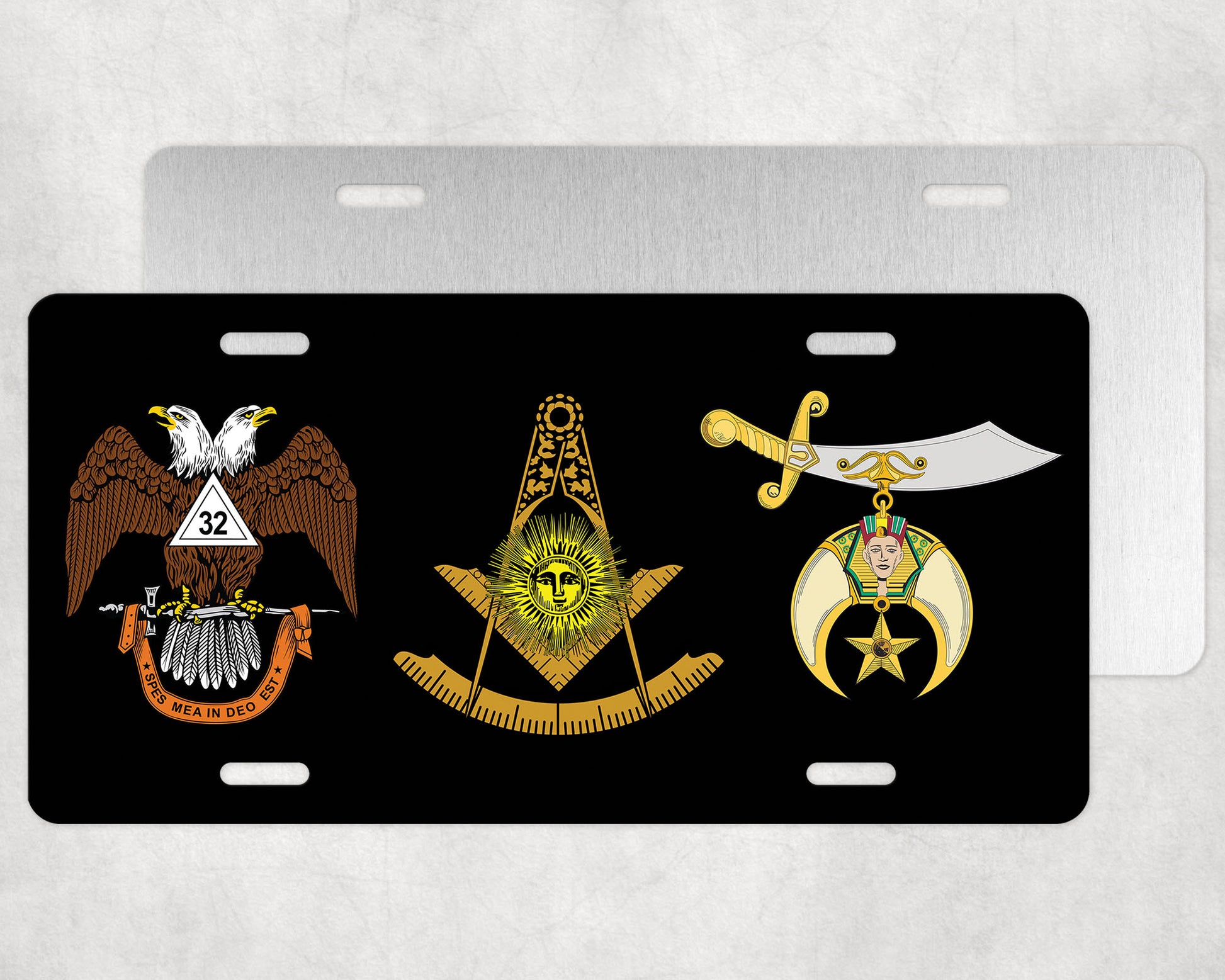 This is our Past Master Mason 32nd Degree WD Shriner License Plate with an amazing high quality sublimated image! It's a permanent picture that won't peel, fade or crack.