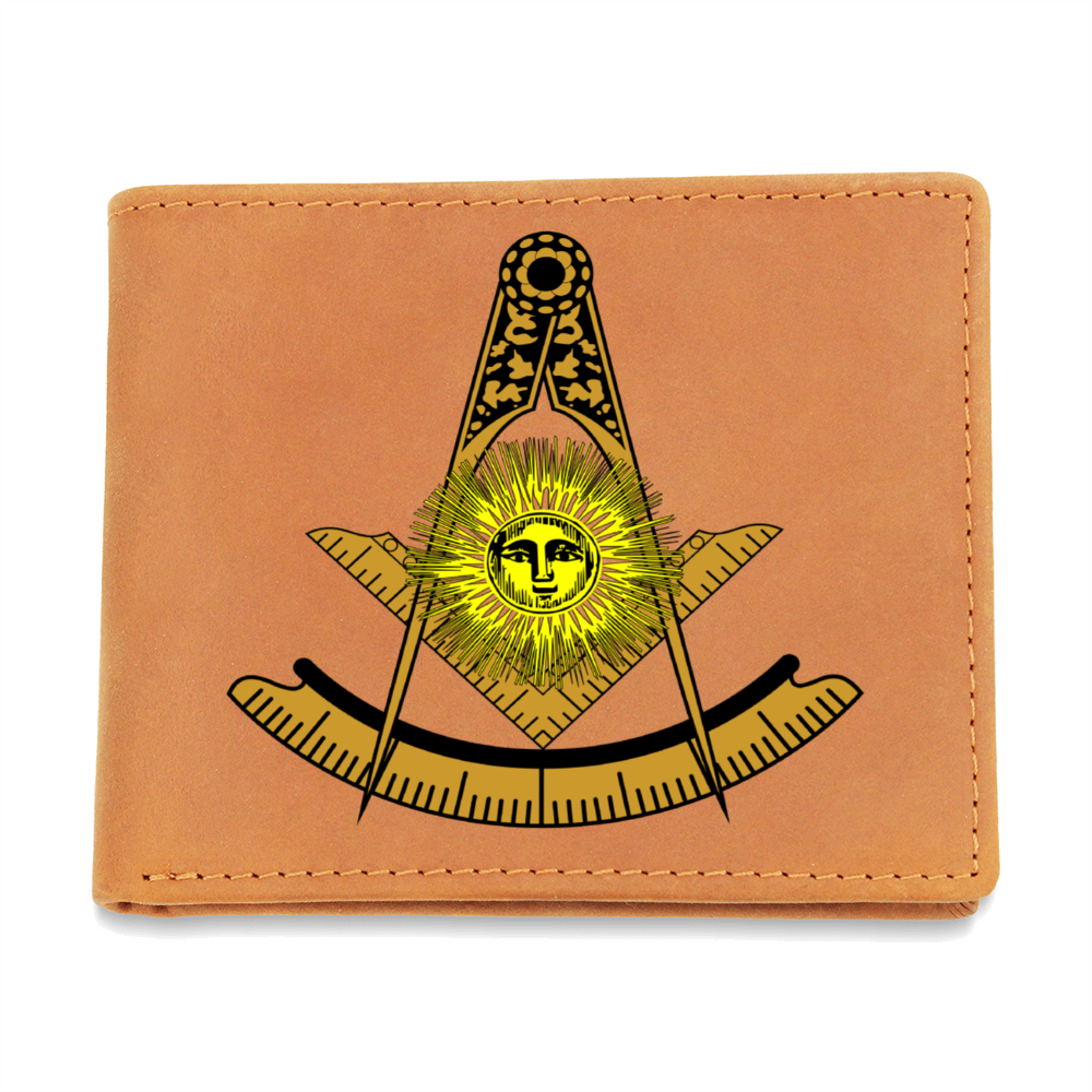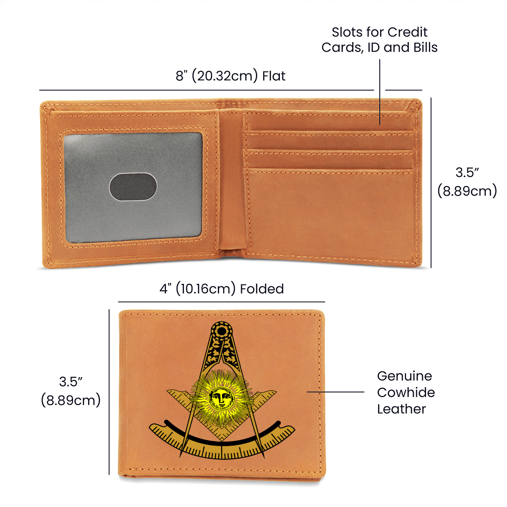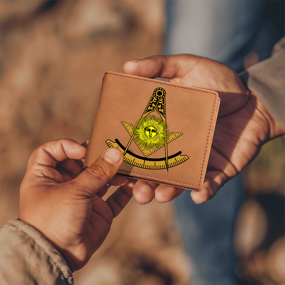 Looking for a thoughtful and attractive gift for that special man in your life? Our Past Master Mason Leather Wallet is the way to go! This handsome bifold wallet exterior is made of the highest quality genuine full grain cowhide. It's recognized for its amazing feel and appearance. Both durable and smooth, the wallet's warm brown color will take on a rich, vintage look, getting better with time and use. The unique design is vibrantly printed on the front and carefully shipped in a handsome black and white gift box - making this a gift to treasure for years to come!