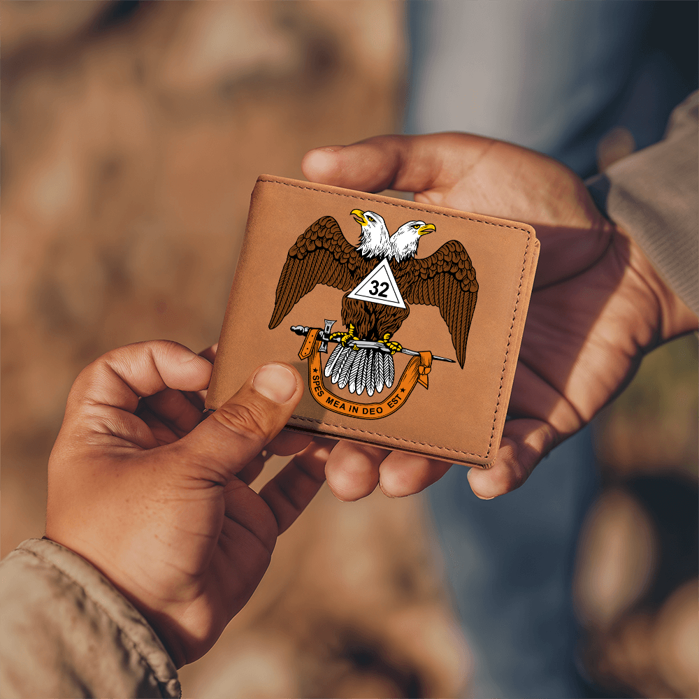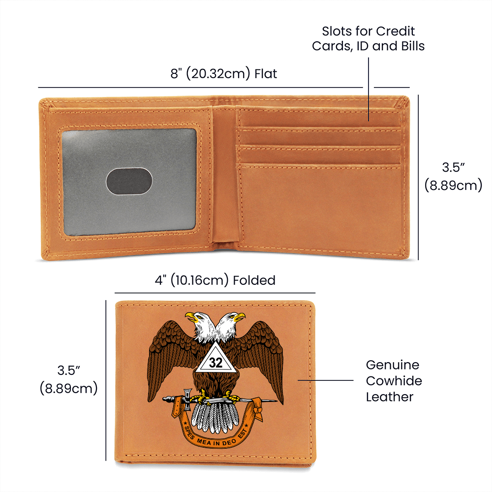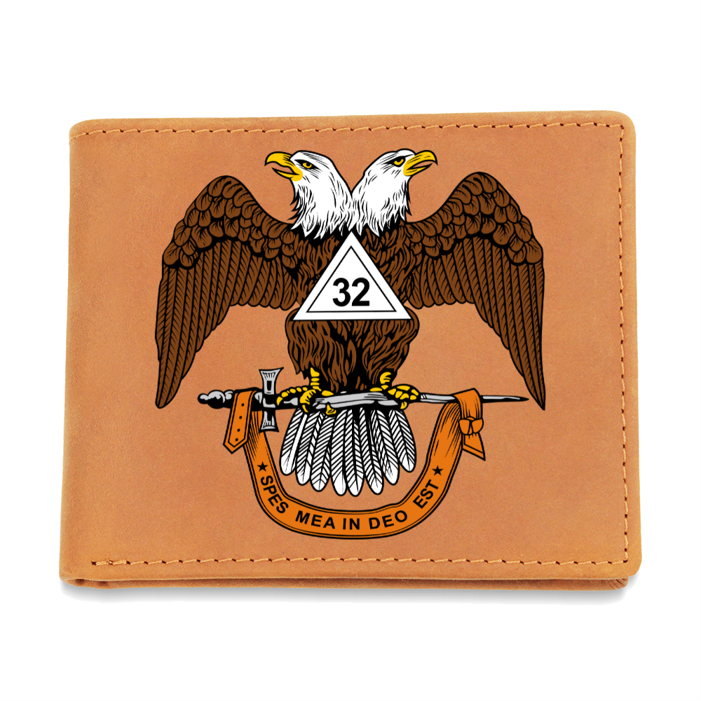 Scottish Rite 32nd Degree Mason Cowhide Leather Wallet WD