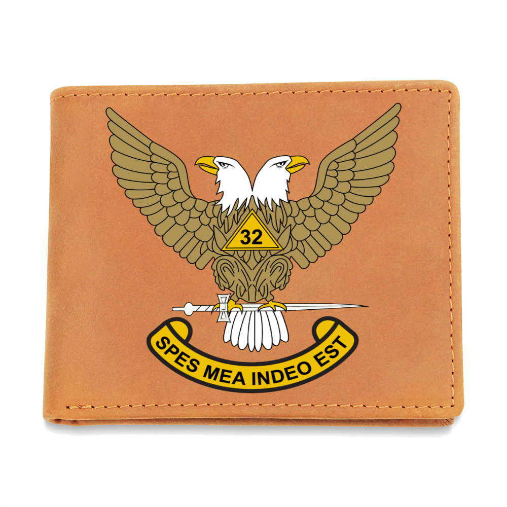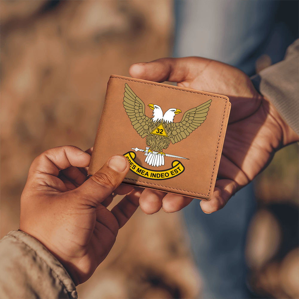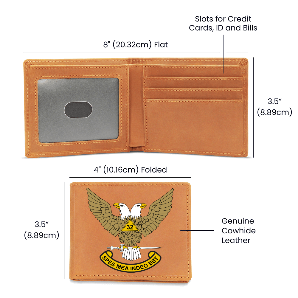 Scottish Rite 32nd Degree Mason Cowhide Leather Wallet WU