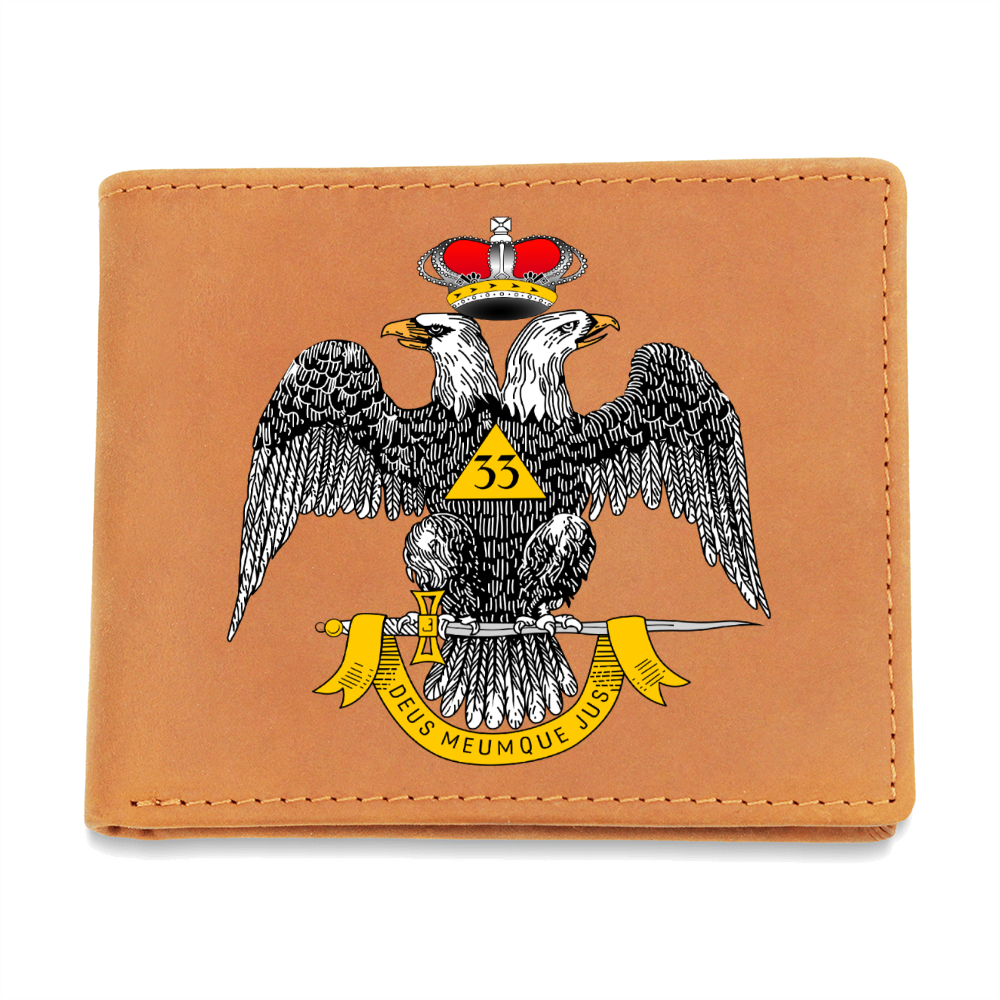 Scottish Rite 33rd Degree Mason Cowhide Leather Wallet WD