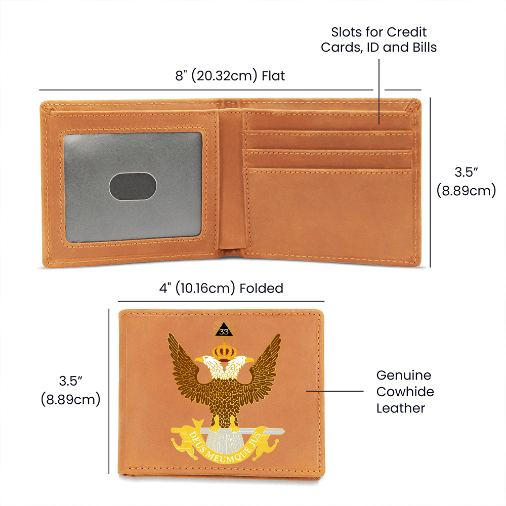 Scottish Rite 33rd Degree Mason Cowhide Leather Wallet WU