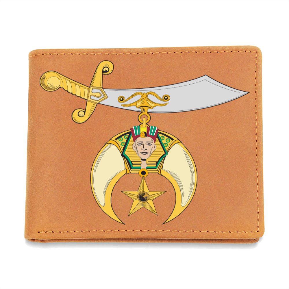 Looking for a thoughtful and attractive gift for that special man in your life? Our Shriner Leather Wallet is the way to go! This handsome bifold wallet exterior is made of the highest quality genuine full grain cowhide. It's recognized for its amazing feel and appearance. Both durable and smooth, the wallet's warm brown color will take on a rich, vintage look, getting better with time and use. The unique design is vibrantly printed on the front and carefully shipped in a handsome black and white gift box - making this a gift to treasure for years to come!