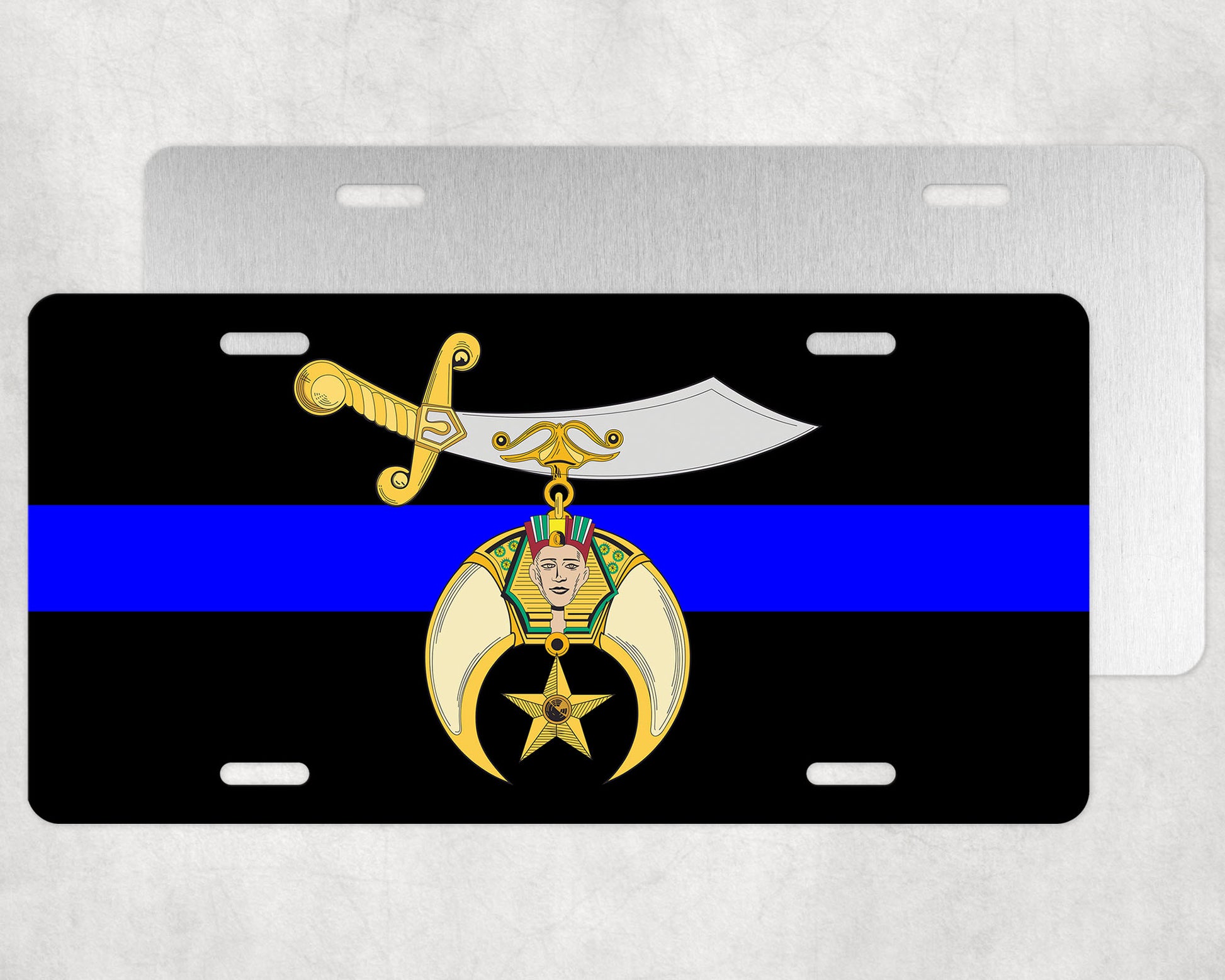 This is our Shriner Police Thin Blue Line license plate with an amazing high quality sublimated image! It's a permanent picture that won't peel, fade or crack.