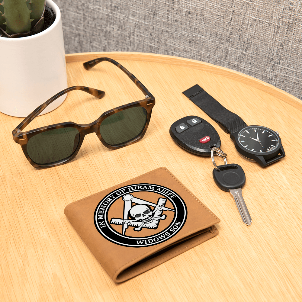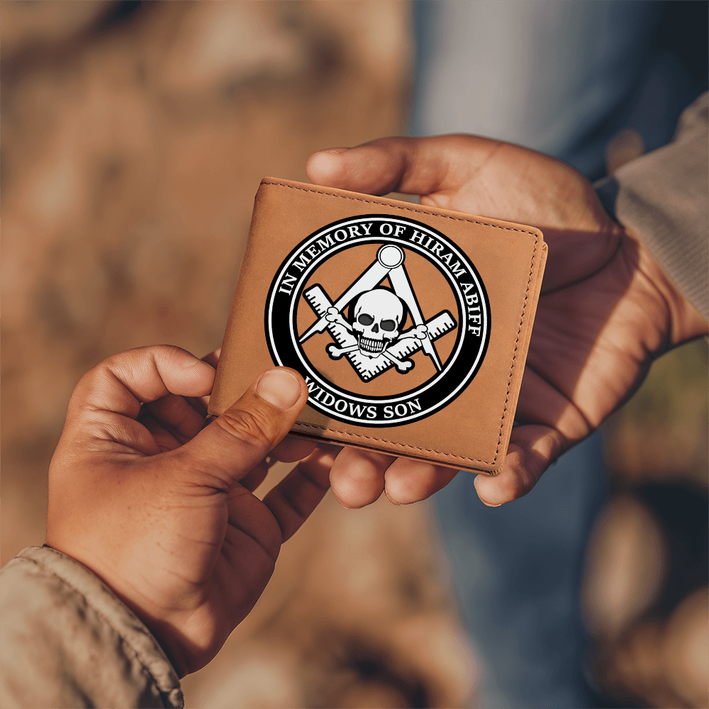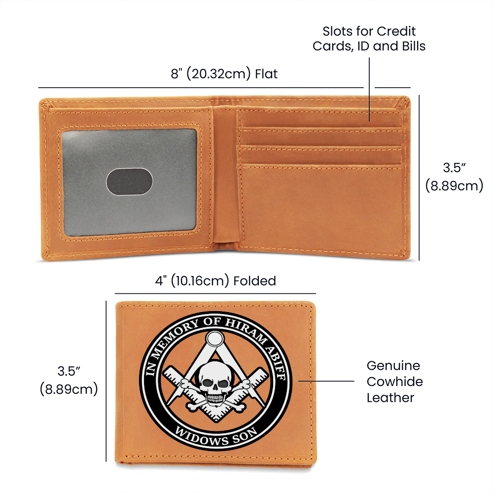 Widows Son Masonic Cowhide Leather Wallet In Memory of Hiram Abiff